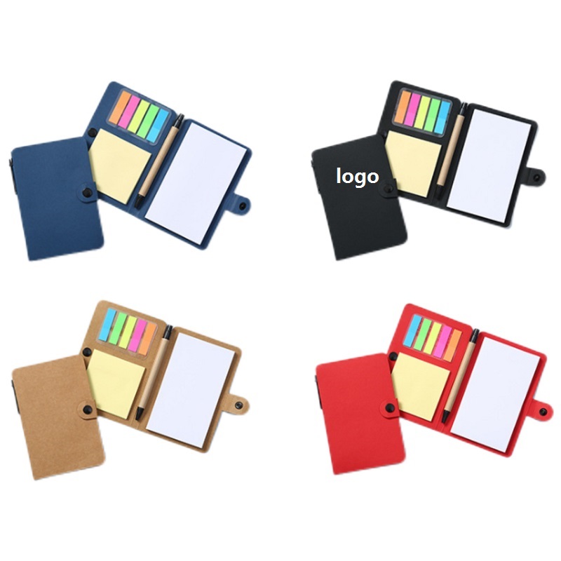 This combined notepad is made of kraft material, which is environmentally friendly and durable. The notepad is equipped with a snap - button design, making it easy to lock and open. It has eye-catching index tabs that can excellently help you highlight key points of the content or classify and code your work by color. An environmentally friendly kraft-paper ballpoint pen is provided to match the notepad. The notepad contains non-adhesive sticky notes that can be easily torn off for convenient use. The sticky notes can be used not only for writing reminder notes but also as page markers. In addition, custom logos are supported to meet personalized needs.